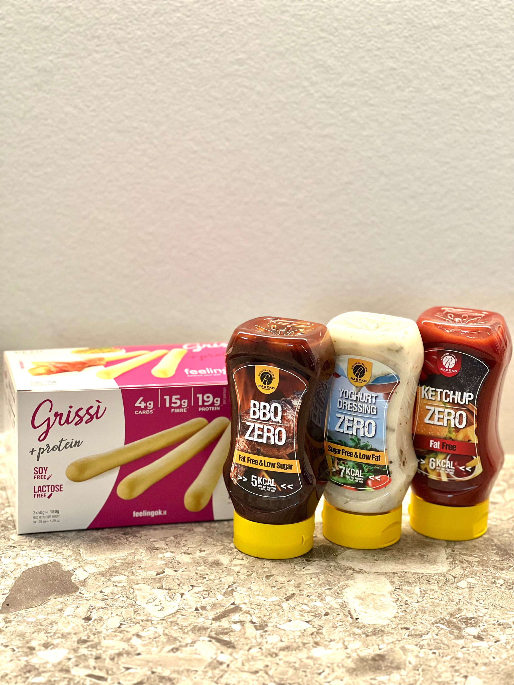 Dit BBQ-pakket is een perfect cadeau voor de BBQ-liefhebber die op zoek is naar gezondere opties. Het pakket bevat drie verschillende sauzen BBQ Zero, Ketchup Zero, en Yoghurt Dressing Zero. Deze sauzen zijn vetvrij en suikerarm, ideaal voor een bewuste levensstijl. Daarnaast bevat het pakket een doos Grissini, een heerlijke snack met extra proteïne. Dit pakket is perfect voor een zomerse BBQ, of om cadeau te doen aan een vriend of familielid die houdt van gezonde, smaakvolle gerechten.