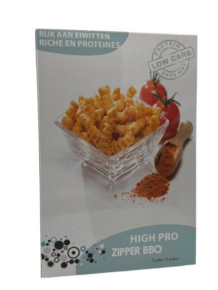 Ingrediënten: Eiwitrijke snack* (soja-eiwitten, aardappelmeel, sojameel, aardappelzetmeel, calciumcarbonaat); zonnebloemolie; plantaardige eiwitten; gistextract; zout; gedehydrateerde groenten (ui, tomaat, knoflook); natriumdiacetaat; aroma’s* (selderij); specerijen; antiklontermiddel: siliciumdioxide; zuurteregelaar: citroenzuur. *ingrediënten gemaakt met genetisch gemodificeerde maïs of soja. Gefabriceerd op machines dat eveneens melk, gluten, ei, pinda, schaalvruchten en sesam gebruiken.